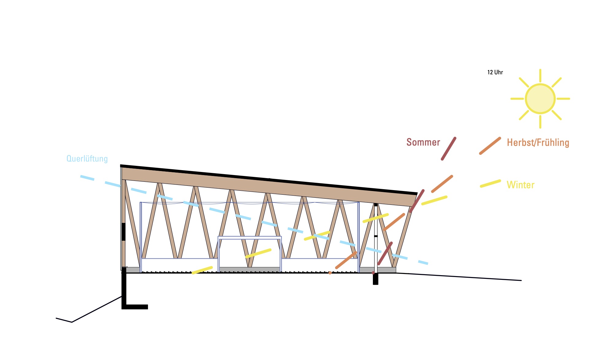 Die Architektur verbindet Funktionalität mit Offenheit: eine lichtdurchflutete Fassade, transluzente Elemente und großzügige Eingangsbereiche schaffen ein einladendes Ambiente. Durch natürliche Belüftung, direkte Anbindung an das Vereinsheim und eine klare, nachhaltige Bauweise entsteht ein energieeffizientes und unkompliziert nutzbares Gebäude. Das Pultdach ist bereits für eine Photovoltaikanlage vorgerichtet und unterstreicht den modernen Anspruch des Projektes.