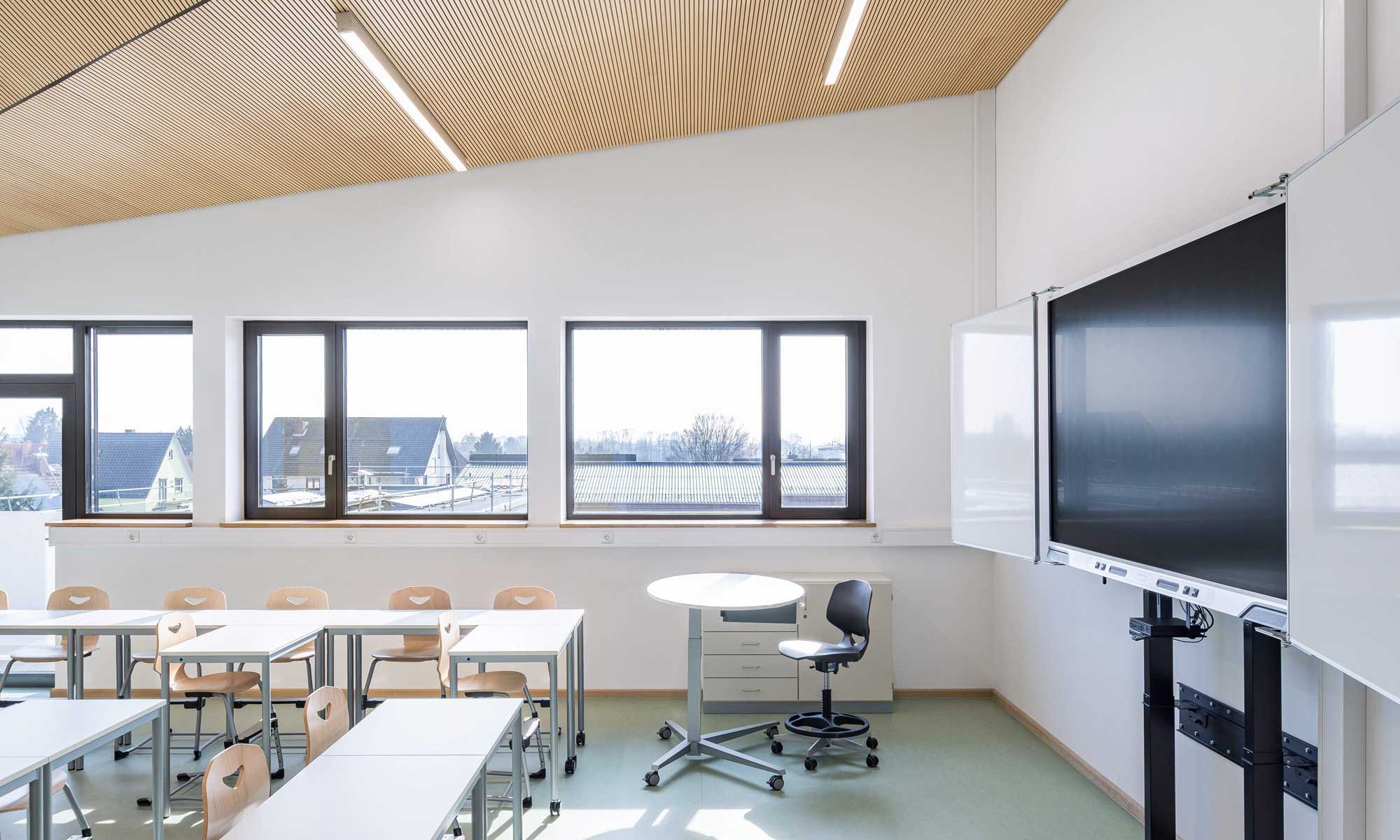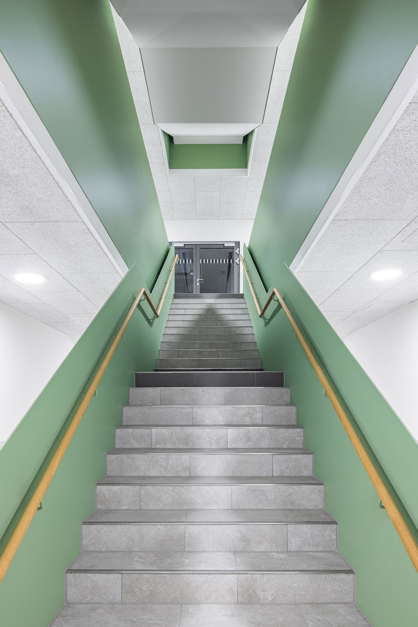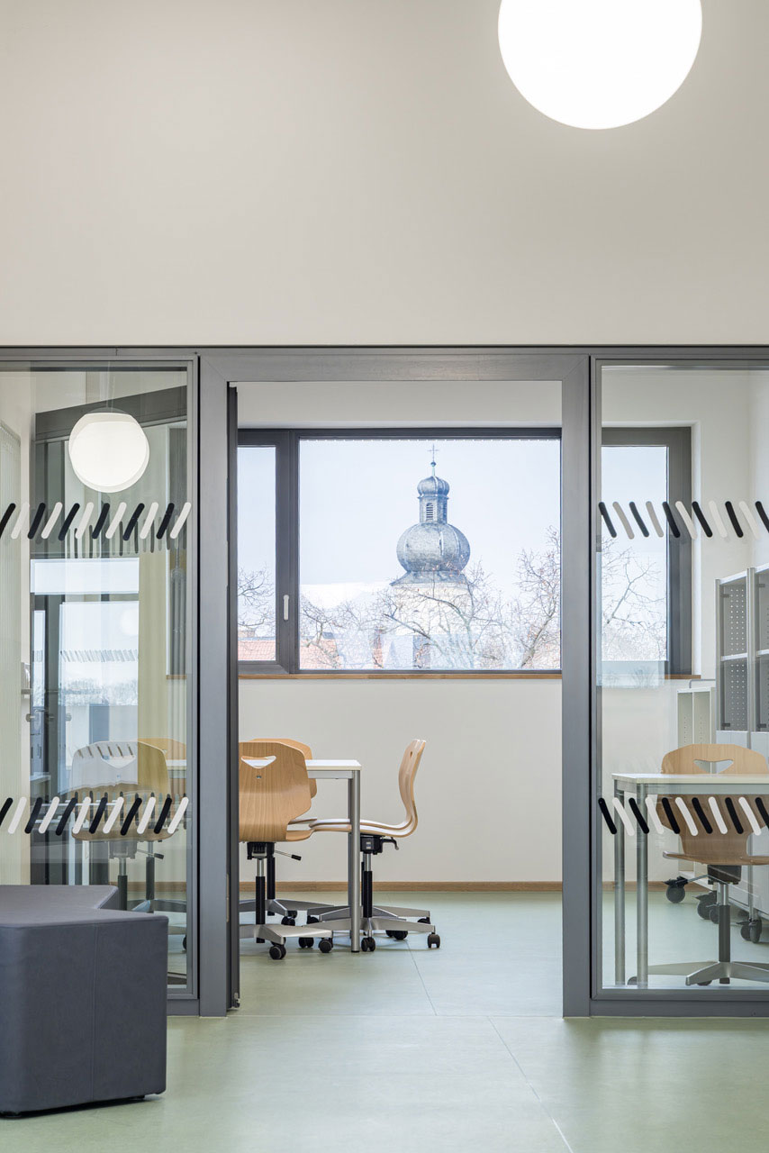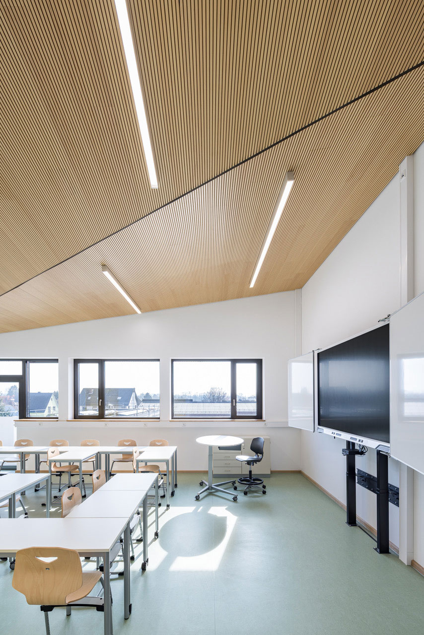 Der Neubau wird zukünftig alle Klassenzimmer aufnehmen können, sowie die gemeinschaftlichen Nutzungen wie Bibliothek und Mensa. Die zwei Bestandsgebäude werden brandschutztechnisch und vor allem energetisch saniert und funktional neu aufgeteilt. Ein Gebäude nimmt Verwaltung und Lehrerbereich auf, ein Gebäude Verwaltung und Ganztags- sowie Fachklassenflächen.